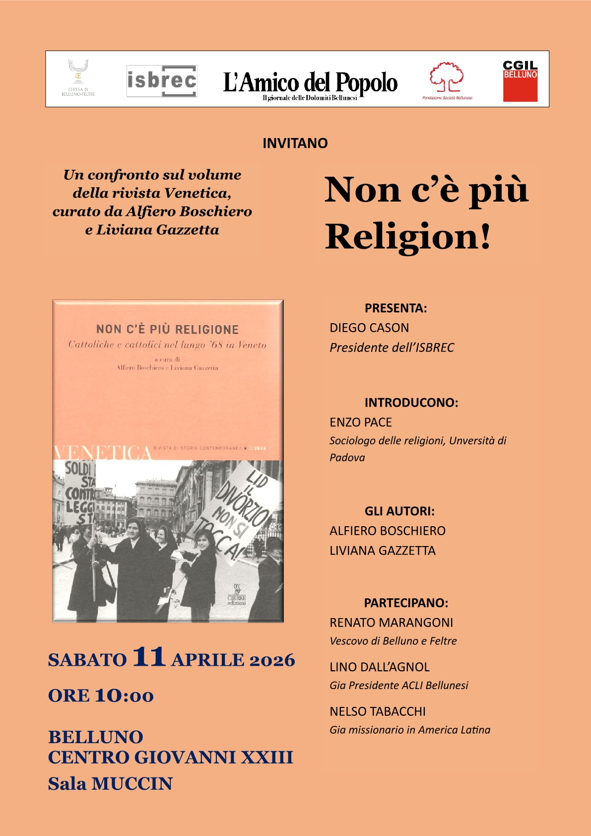 la diocesi di Belluno e Feltre, l’Amico del Popolo e la Cgil – presentano la rivista Venetica “NON C’E’ PIU’ RELIGIONE Cattoliche e cattolici nel lungo ’68 in Veneto“.